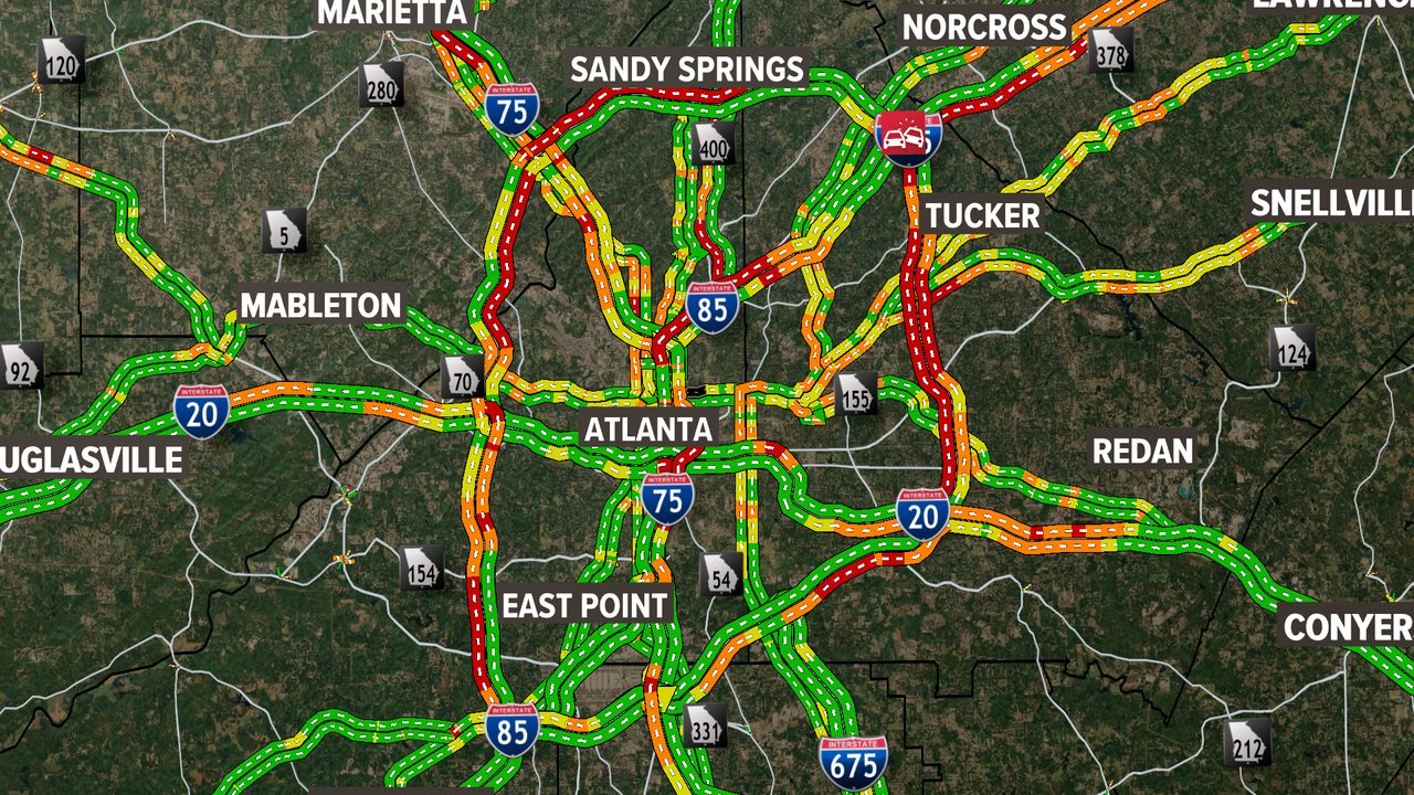 Atlanta Live Traffic Map – Hartsfield-Jackson Atlanta International Airport said it expects 2.3 million passengers to travel to, from, or through its doors alone from Wednesday, Aug. 28, until Wednesday, Sept. 4. With the mix . The Storm Prediction Center has placed northeast Georgia in a Marginal Risk (Level 1 out of 5) for severe weather. .
